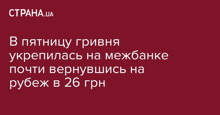 В пятницу гривня укрепилась на межбанке почти вернувшись на рубеж в 26 грн