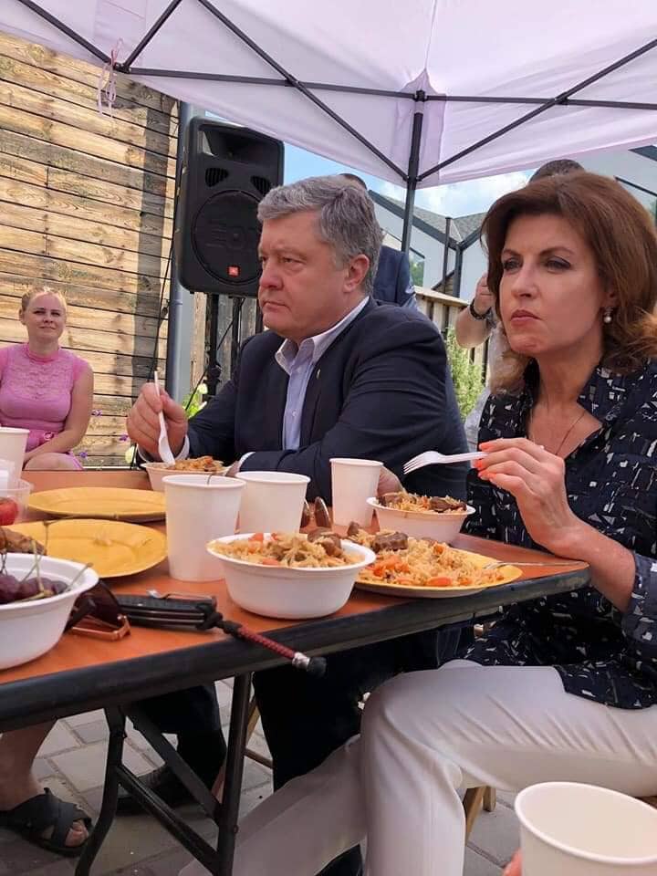 Бывший президент Украины Петр Порошенко со своей супругой попал на камеры журналистов во время обеда, на котором он ел плов из одноразовой пластиковой посуды.