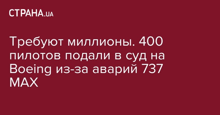 Около 400 пилотов через суд потребовали от американской компании Boeing возместить ущерб из-за "беспрецедентного сокрытия" ошибок, допущенных при проектировании последней версии самолета 737 MAX. Об этом передает АВС.