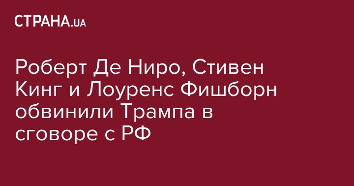 Актер Роберт Де Ниро, а также Лоуренс Фишборн, известный по роли Морфеуса в "Матрице", и писатель Стивен Кинг снялись в ролике, обвиняющем правительство России во вмешательстве в американские выборы, а президента США Дональда Трампа - в сговоре с Москвой. Видео опубликовал портал NowThis.
