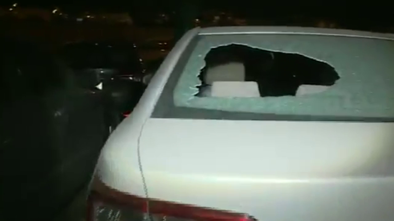 Удар пришелся на парковку аэропорта. В результате этого повреждены множество автомобилей - в них разбиты окна.