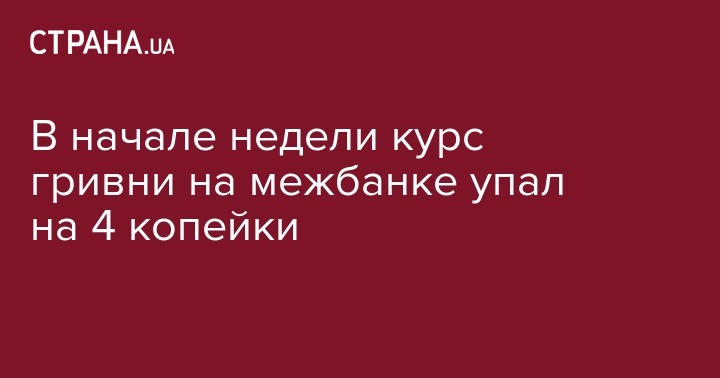 В начале недели курс гривни на межбанке упал на 4 копейки