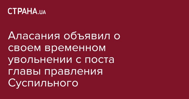 Глава правления Национальной общественной телерадиокомпании Украины (НОТУ) Зураб Аласания заявил о своем временном увольнении с должности председателя правления Суспильного.