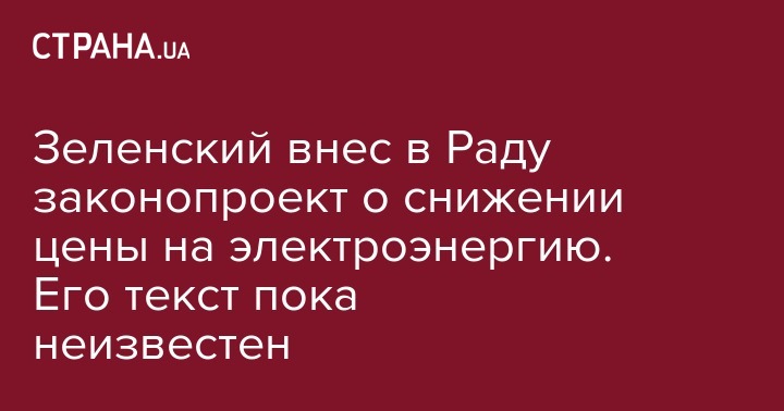 Зеленский внес в Раду законопроект о снижении цены на электроэнергию. Его текст пока неизвестен