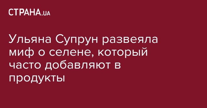 Исполняющая обязанности министра здравоохранения Ульяна Супрун развенчала популярные мифы о добавках, а также рассказала о том, как селен может влиять на организм человека. Об этом она написала на своей странице в Facebook.