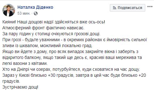 Немного позднее Дидекно опубликовала еще один пост в Facebook, в котором объяснила похолодание атмосферным фронтом балтийского циклона, который идет через Украину.