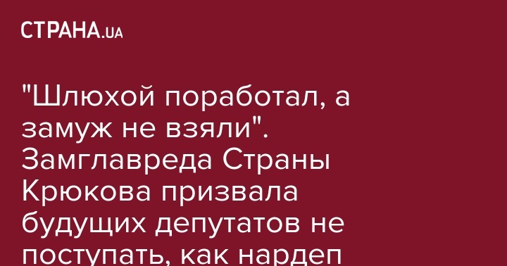 Заместитель главного редактора издания Страна.ua Светлана Крюкова в эфире политической программы "Украинский формат" на телеканале Newsone дала совет будущим депутатам Верховной Рады, призвав их не поступать как член Радикальной партии, нардеп Дмитрий Линько, который был одним из главных участников фальсификации дела против главреда Страны Игоря Гужвы.