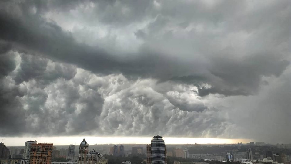 Опубликовано впечатляющее видео мощной бури, которая сегодня дважды накрыла Киев