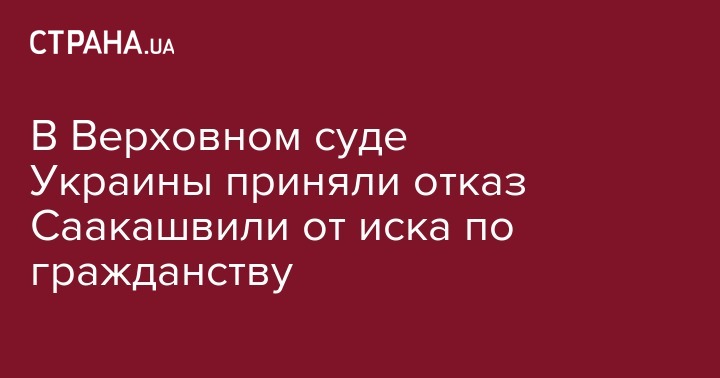 Верховный суд Украины в составе коллегии судей Кассационного админсуда принял отказ Михаила Саакашвили от иска о признании незаконным и отмене Указа президента Украины от 26 июля 2017 года №196 "О прекращении гражданства Украины" в части "считать утратившим гражданство Украины Саакашвили Михаила". Об этом сообщает пресс-служба Верховного суда.