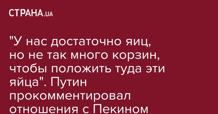 "У нас достаточно яиц, но не так много корзин, чтобы положить туда эти яйца". Путин прокомментировал отношения с Пекином