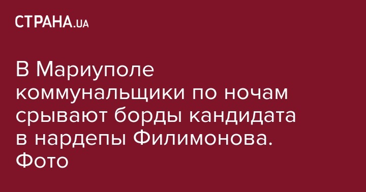 В сообщении говорится о том, что в ночь на 28 июня коммунальные службы по распоряжению  местной власти, подконтрольной "Оппозиционному блоку", сорвали борды с политической рекламой кандидата в народные депутаты от "Оппозиционной платформы - За жизнь" по 57 округу Владислава Филимонова. Уточняется, что это уже второе такое ЧП за последнюю неделю.