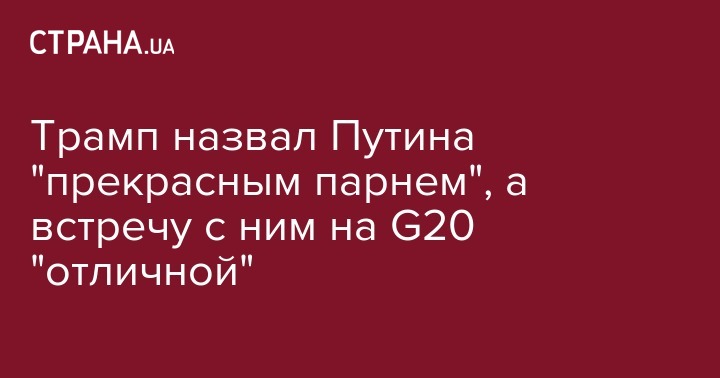 Президент США Дональд Трамп назвал главу российского государства Владимира Путина "прекрасным парнем", а состоявшуюся на саммите G20 полуторачасовую встречу c ним - "отличной". Об этом сообщает "Россия 24".