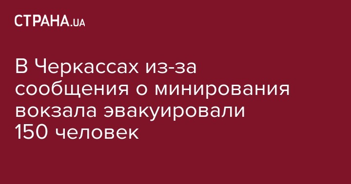 В Черкассах поступило сообщение о минировании железнодорожного вокзала, из-за чего было эвакуировано 150 человек. Об этом сообщает пресс-служба местной полиции.