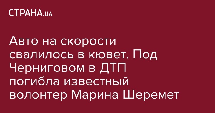 Известный волонтер Марина Шеремет погибла в результате ДТП, которое произошло 30 июня в Черниговской области. Причина аварии пока неизвестна. Об этом на своей странице в Facebook сообщила знакомая погибшей под ником Margo White.