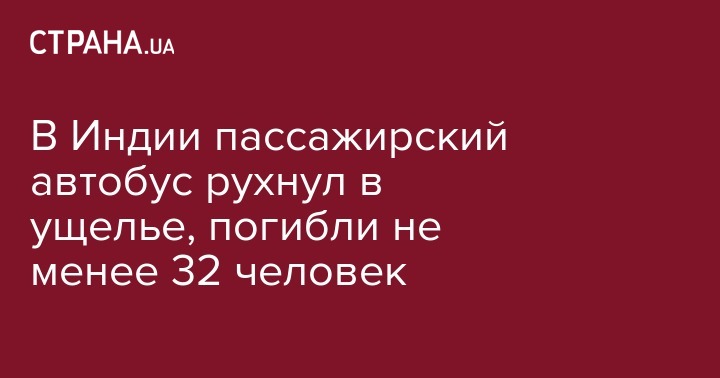 Сегодня, 1 июля, в Индии не менее 32 человек погибли в страшном ДТП с пассажирским автобусом. Еще 17 человек получили травмы. Смертельная авария произошла в северном штате Джамму и Кашмир. Об этом сообщает India Express.