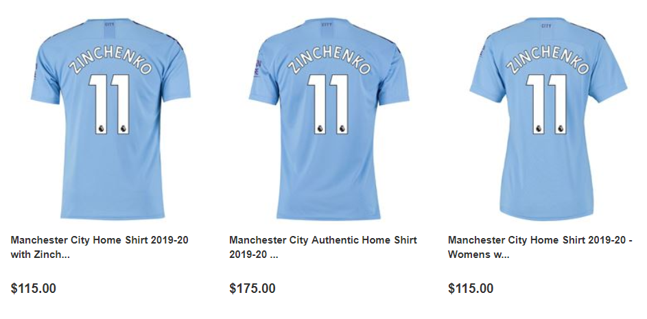 Причем, предлагаются футболки в официальном интернет-магазине "горожан" по весьма солидной цене. Так, полностью аутентичная футболка, то есть точно такая же в какой будет играть и Зинченко в новом сезоне, обойдется вам в $175. Дамский вариант аутентика вам продадут за $115.