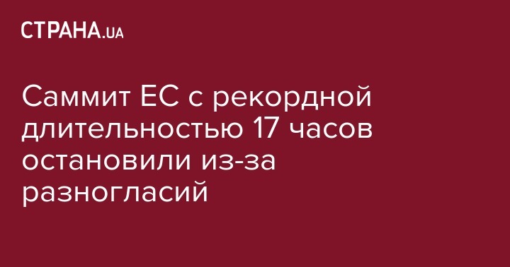 Саммит ЕС с рекордной длительностью 17 часов остановили из-за разногласий