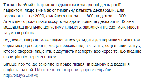 Помимо этого, медик может отказаться от пациента, если у него уже есть определенное количество деклараций. Для терапевта - это 2000, семейного врача - 1800, педиатра - 900. С 2019 года врачи могут заключать и больше деклараций. В каждом медучреждение это количество свое.