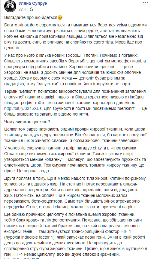 Супрун раскрыла украинкам секрет борьбы с целлюлитом