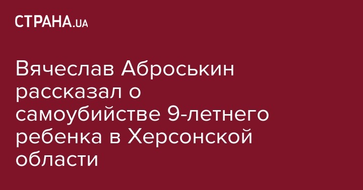 Вячеслав Аброськин рассказал о самоубийстве 9-летнего ребенка в Херсонской области