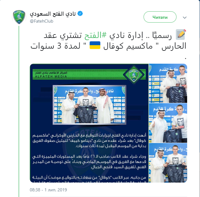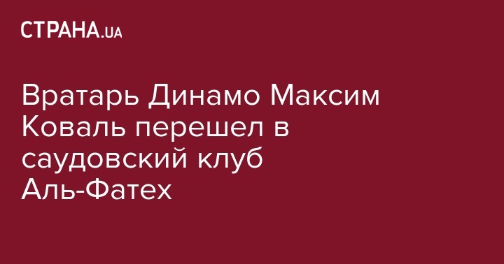 Вратарь из Украины Максим Коваль подписал контакт с командой "Аль-Фатеха". Об этом сообщат пресс-служба клуба в Твиттере.