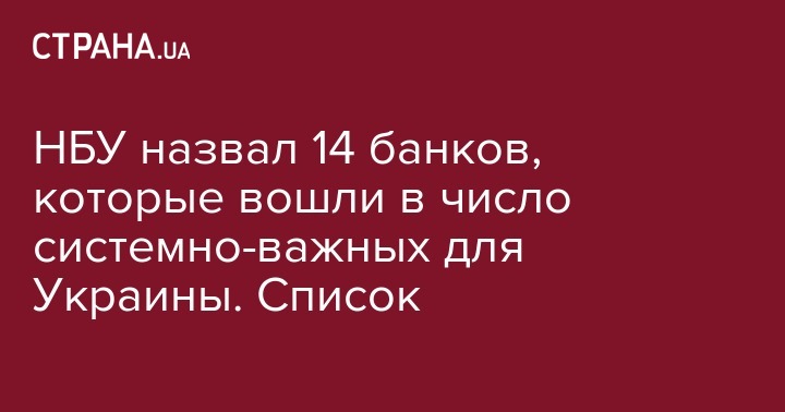 Согласно обновленной методологии, отныне системно важными считаются 14 банков: ПриватБанк, Ощадбанк, Укрэксимбанк, Укргазбанк, Альфа-банк, Укрсоцбанк, Райффайзен Банк Аваль, ПУМБ, Укрсиббанк, Таскомбанк, Универсал банк, Кредобанк, ОТП банк, Южный.