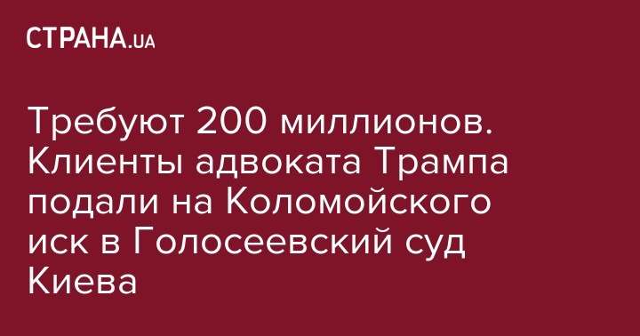 Требуют 200 миллионов. Клиенты адвоката Трампа подали на Коломойского иск в Голосеевский суд Киева
