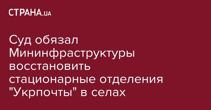 Окружной административный суд города Киева обязал Министерство инфраструктуры Украины восстановить стационарные почтовые отделения в селах с населением менее 2 000 человек.