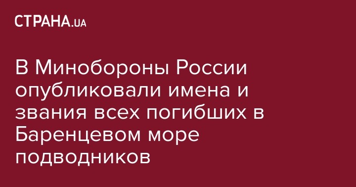 В Минобороны России опубликовали имена и звания всех погибших в Баренцевом море подводников