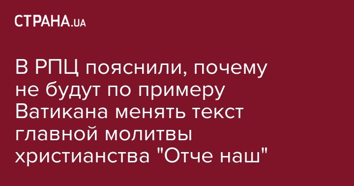 Русская православная церковь (РПЦ) не собирается вслед за Ватиканом менять текст молитвы "Отче наш".