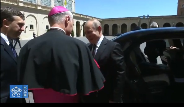 С часу дня у Апостольского дворца (резиденции Папы) Путина ждали личный секретарь Франциска, журналисты и почетная гвардия. Президент России прибыл в 14:07.