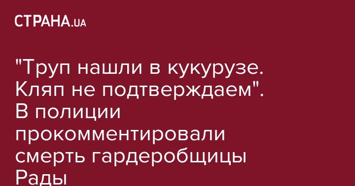 Бездыханное тело 65-летней гардеробщицы парламента Антонины Шпир, которая пропала 29 июня по пути из Киева в село Дыминовка, обнаружили на территории сельскохозяйственных полей в среду, 3 июля. Об этом "Стране" рассказал спикер Нацполиции региона Николай Жукович.