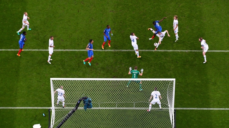 22.21 Погба после углового вколачивает мяч головой в сетку. На полкорпуса перепрыгнул исландского защитника.