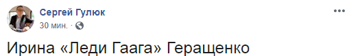"Ирина "Леди Гаага" Геращенко", - написал телеведущий Сергей Гулюк.