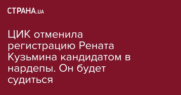 "В пятницу, 5 июля, состоялось очередное заседание ЦИК, на котором комиссия отменила регистрацию Рената Кузьмина из списка партии "Оппозиционная платформа - За жизнь". Он был 35 номером", - сообщает гражданская сеть "Опора" на своей странице в соцсети Facebook.