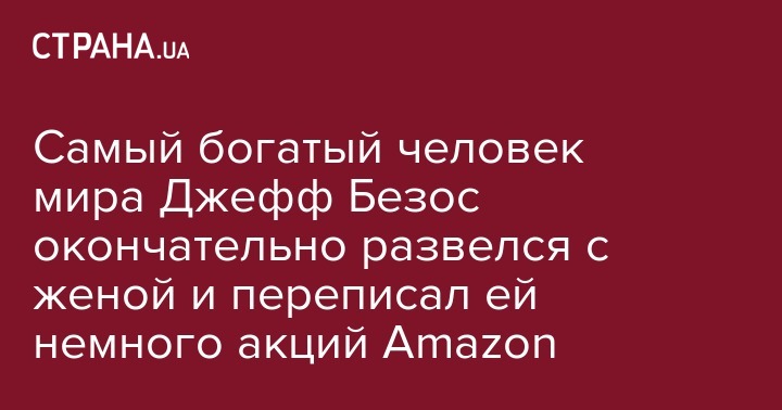 Самый богатый человек мира Джефф Безос окончательно развелся с женой и переписал ей немного акций Amazon