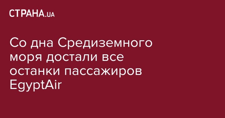 С места крушения самолета авиакомпании EgyptAir, который разбился в Средиземном море, подняты останки тел всех пассажиров. Об этом сообщает Reuters со ссылкой на египетскую комиссию по расследованию катастрофы.