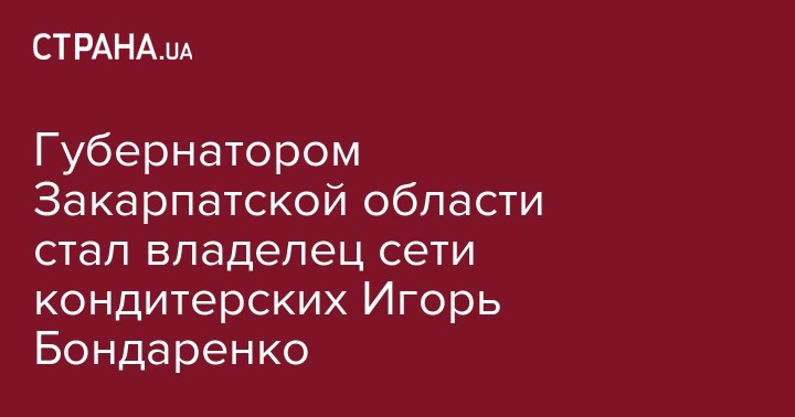 Президент Украины Владимир Зеленский назначил новым председателем Закарпатской ОГА бизнесмена из Мукачево и основателя кондитерского дома Игоря Бондаренко. Об этом говорится в указе №492 от 5 июля на сайте президента.