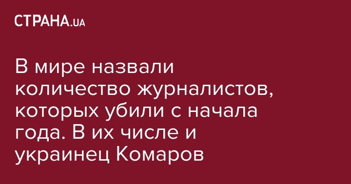 С января по конец июня этого года в 20 странах мира были убиты 38 журналистов. В списке погибших журналистов есть украинец Вадим Комаров, который умер 20 июня в Черкассах. Об этом говорится в отчете неправительственной компании Press Emblem Campaign, которая базируется в Женеве.