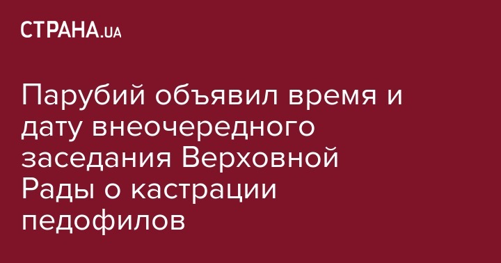 Напомним, Рада соберается на внеочередное заседание ради кастрации педофилов. На этом заседании будут рассмотрены следующие вопросы: проект закона о внесении изменений в некоторые законодательные акты Украины относительно усиления ответственности за преступления, совершенные в отношении малолетней (малолетнего), несовершеннолетнего (несовершеннолетней) и лица, не достигшего половой зрелости (№6449 от 16.05.2017); проект закона о внесении изменений в некоторые законы Украины относительно внедрения Единого реестра лиц, осужденных за преступления против половой свободы и половой неприкосновенности малолетней или малолетнего, и усиление ответственности за преступления, совершенные против половой свободы и половой неприкосновенности малолетней или малолетнего (№6607 от 21.06.2017).