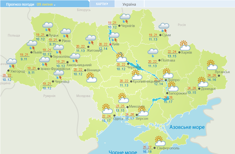Во вторник, 9 июля, в Украине будет прохладно, местами пройдут дожди. Об этом сообщает Укргидрометцентр.