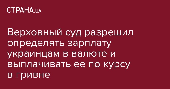 Верховный суд разрешил определять зарплату украинцам в валюте и выплачивать ее по курсу в гривне