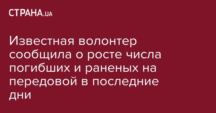 Известная волонтер сообщила о росте числа погибших и раненых на передовой в последние дни