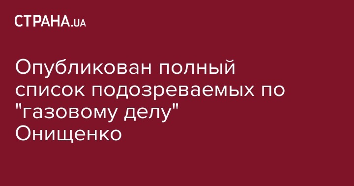 Стали известны имена подозреваемых в "газовом деле" нардепа Александра Онищенко. В тексте представления Генпрокуратуры "О согласии на привлечение к уголовной ответственности, задержание и арест народного депутата Александра Онищенко", представлен список из 20 его соратников, участвующих в "газовой схеме".  Этот документ опубликовал на своей странице в Facebook нардеп Сергей Лещенко.