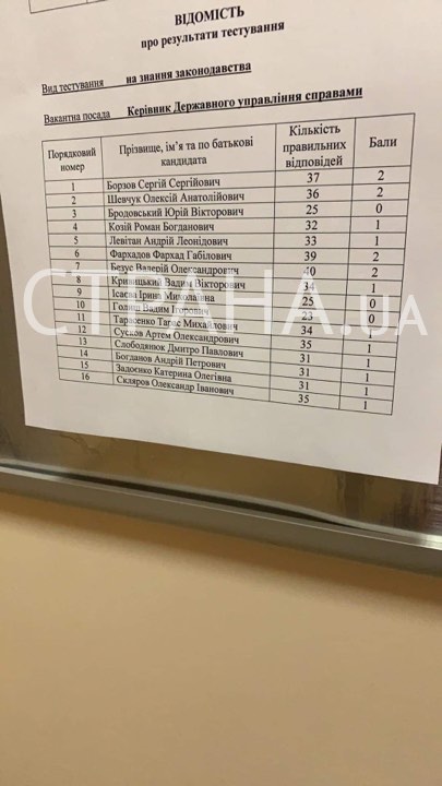 Стали известны результаты первого этапа конкурса на должность руководителя Государственного управления делами (т.н. ДУСя - прим.ред.). Это был тест на знание законодательства и на нем можно было получить 0, 1 или 2 балла.