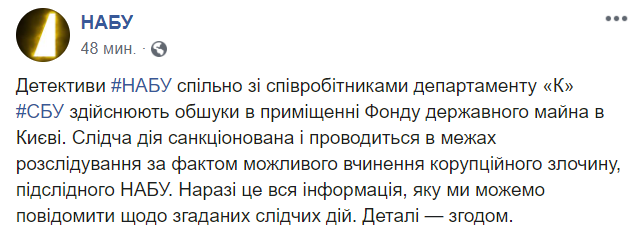 НАБУ совместно с антикоррупционным департаментом СБУ провели обыски в киевском Фонде госимущества.