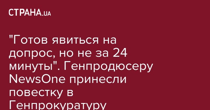 "Готов явиться на допрос, но не за 24 минуты". Генпродюсеру NewsOne принесли повестку в Генпрокуратуру