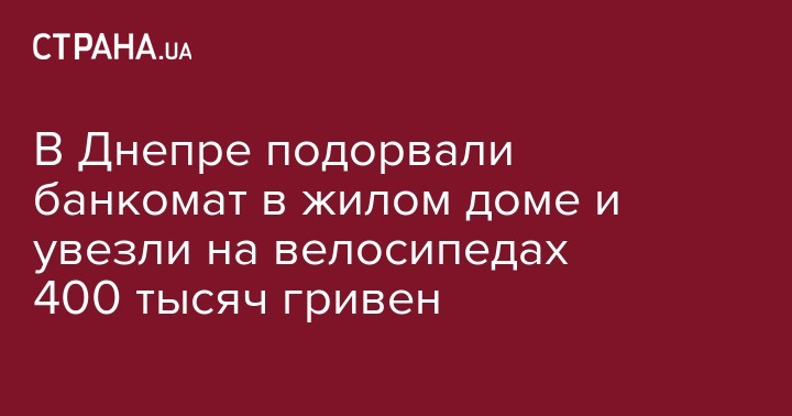 В Днепре подорвали банкомат в жилом доме и увезли на велосипедах 400 тысяч гривен