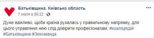 Также на Facebook-cтранице "Батькивщины" в Киевской области был размещен постер с Зеленским и Тимошенко "в роли" миссис Смит и мистера Смитас явным намеком на коалицию. "Очень важно, чтобы страна двигалась в правильном направлении, для этого управление ею следует доверить профессионала", - говорится в подписи к постеру.
