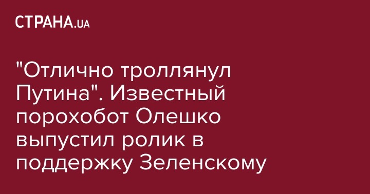 Блогер и самые известный порохобот Украины Мирослав Олешко, ранее активно поддерживающий политику экс-президента Петра Порошенко и постоянно выступавший с критикой в своих блогах в Facebook и YouTube в адрес Владимира Зеленского, вдруг выпустил ролик, в котором хвалит нынешнего президента за троллинг Владимира Путина.